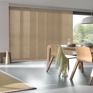Vertical panel blinds work well for covering large windows and sliding glass doors, offering a contemporary alternative to traditional vertical blinds.