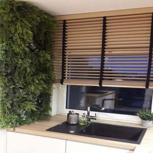 Faux wood blinds are made of composite materials that mimic the appearance of real wood. They are more resistant to moisture and humidity, making them suitable for high-humidity areas like bathrooms and kitchens.