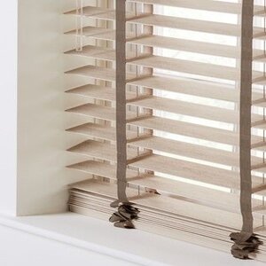 These blinds are made from basswood, a lightweight and durable wood. They are available in various finishes and colors, providing a versatile option for different interior styles.